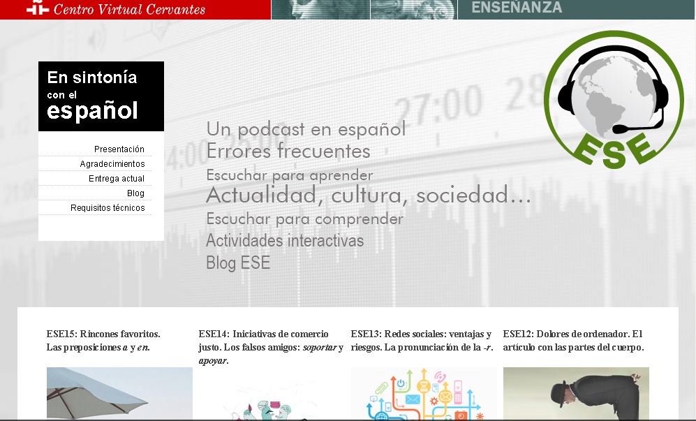- Propuesta didáctica del Instituto Cervantes para practicar y mejorar la comprensión auditiva del español. Incluye podcasts sobre cultura, actualidad, sociedad y actividades interactivas que puedes adapatar a tus alumnos según sus necesidades y nivel. https://cvc.cervantes.es/ensenanza/ese/default.htm